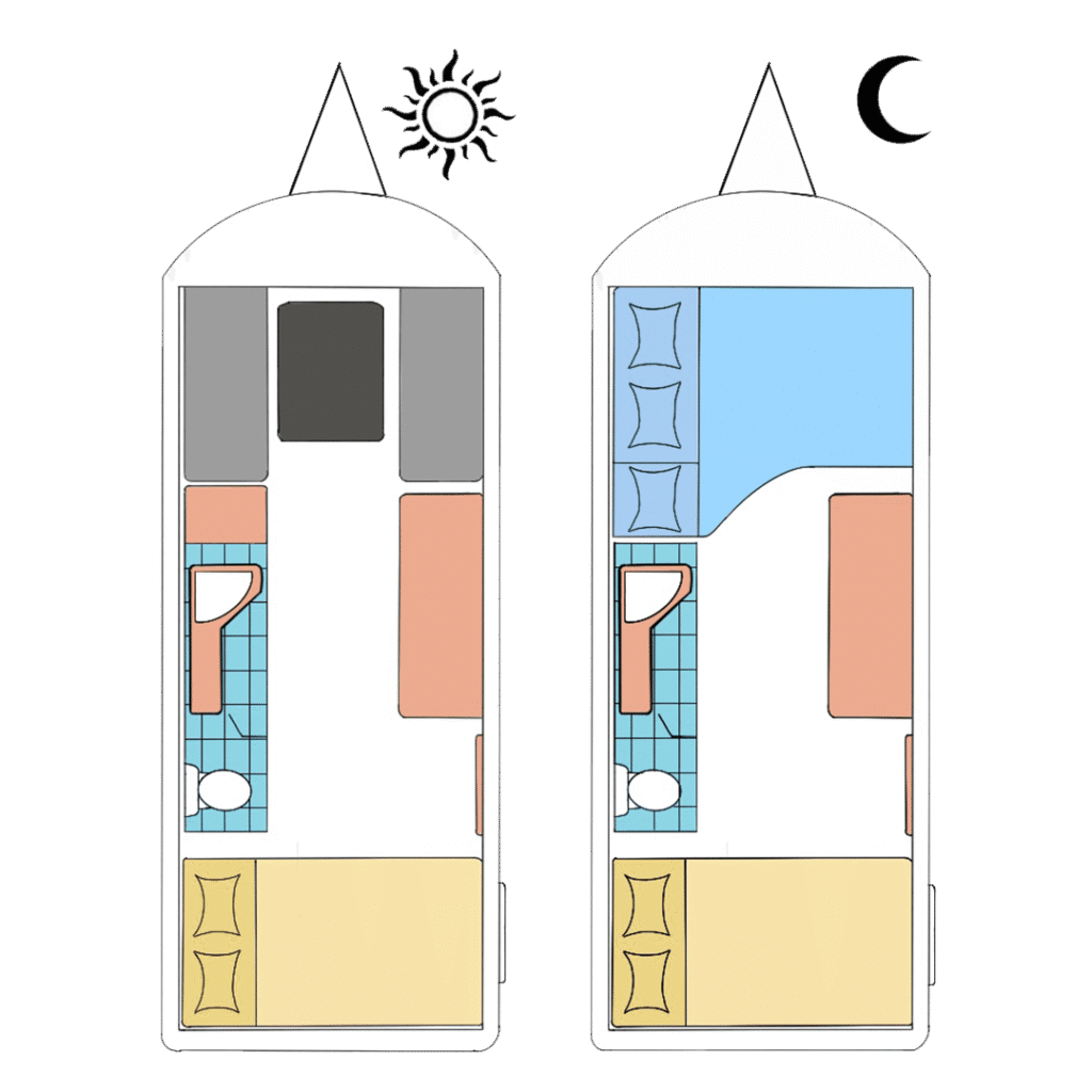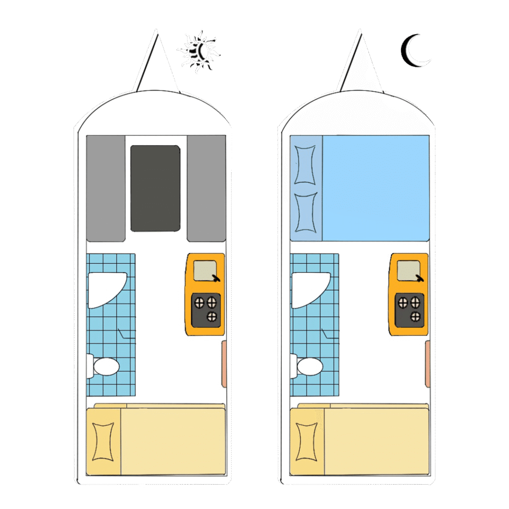 Inception 400 Bathaid, geniş iç hacmi ve modern tasarımı ile karşınızda. 2-4 kişilik yatak kapasitesi, geniş oturma alanları, yüksek depolama hacmi ve konforlu sürüş tekniği ile Inception serisi bir karavandan beklediğinizden daha fazlasını size sunuyor.